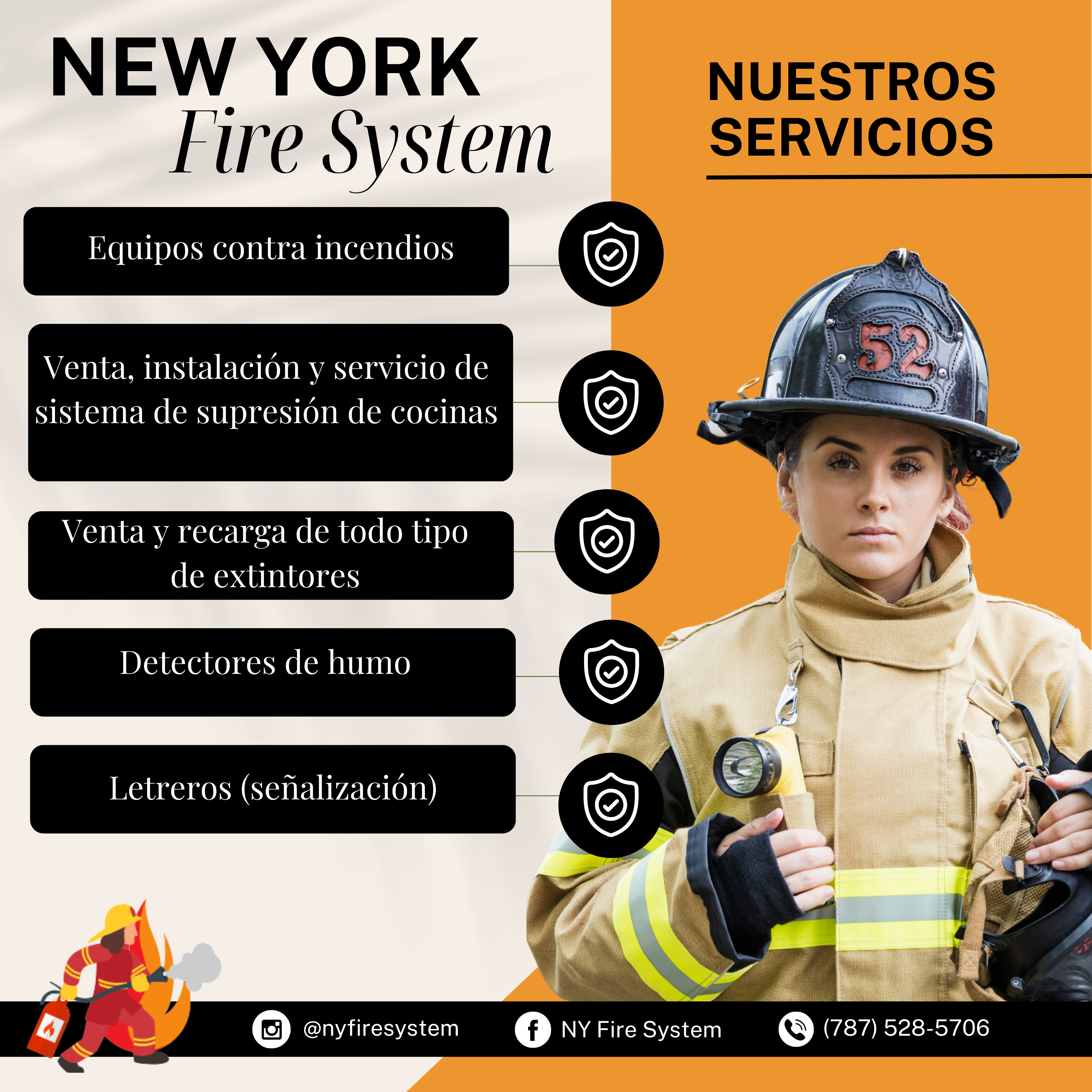 NEW YORK FIRE SYSTEM. Servicio y venta de equipos contra incendios, sistema de supresi?n de cocinas, sistema de alarmas, letreros y gestor?a de permisos
