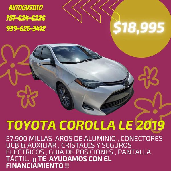 Toyota Corolla LE 2019⚡️ A $18, 995 Con 57, 900 millas CUENTA CON: AROS DE ALUMINIO CONECTORES UCB & AUXILIAR CRISTALES Y SEGUROS ELÉCTRICOS GUIA DE POSICIONES , PANTALLA TÁCTIL.. TE AYUDAMOS CON EL FINANCIAMIENTO!!!