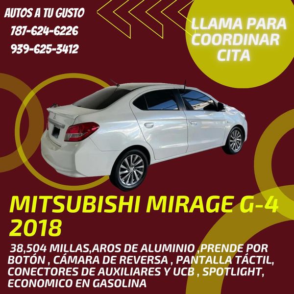 Mitsubishi Mirage G-4 2018 El más equipado! Cuenta con:38, 504 millas AROS DE ALUMINIO PRENDE POR BOTÓN CÁMARA DE REVERSA PANTALLA TÁCTIL CONECTORES DE AUXILIARES Y UCB SPOTLIGHT ECONOMICO EN GASOLINA