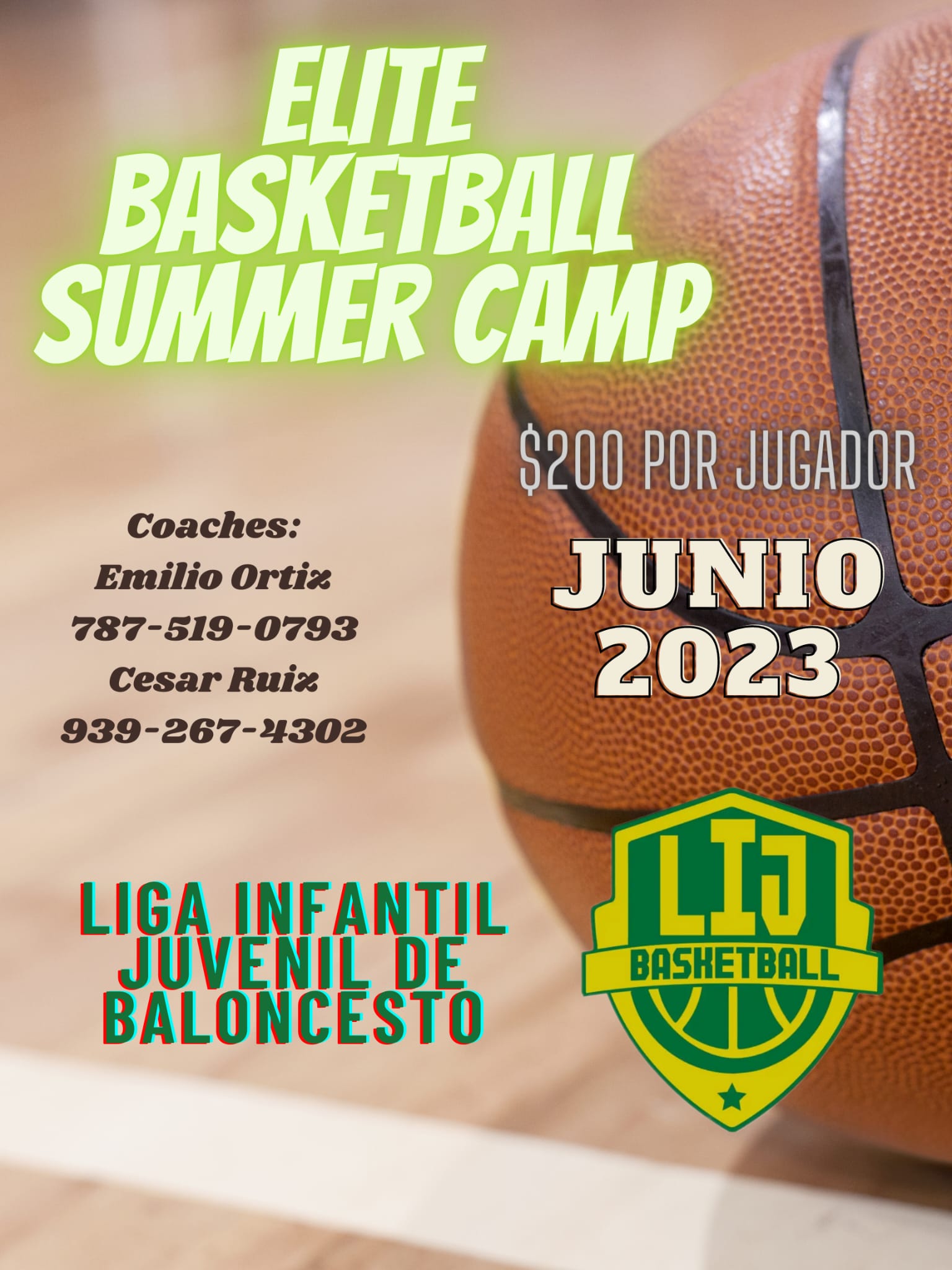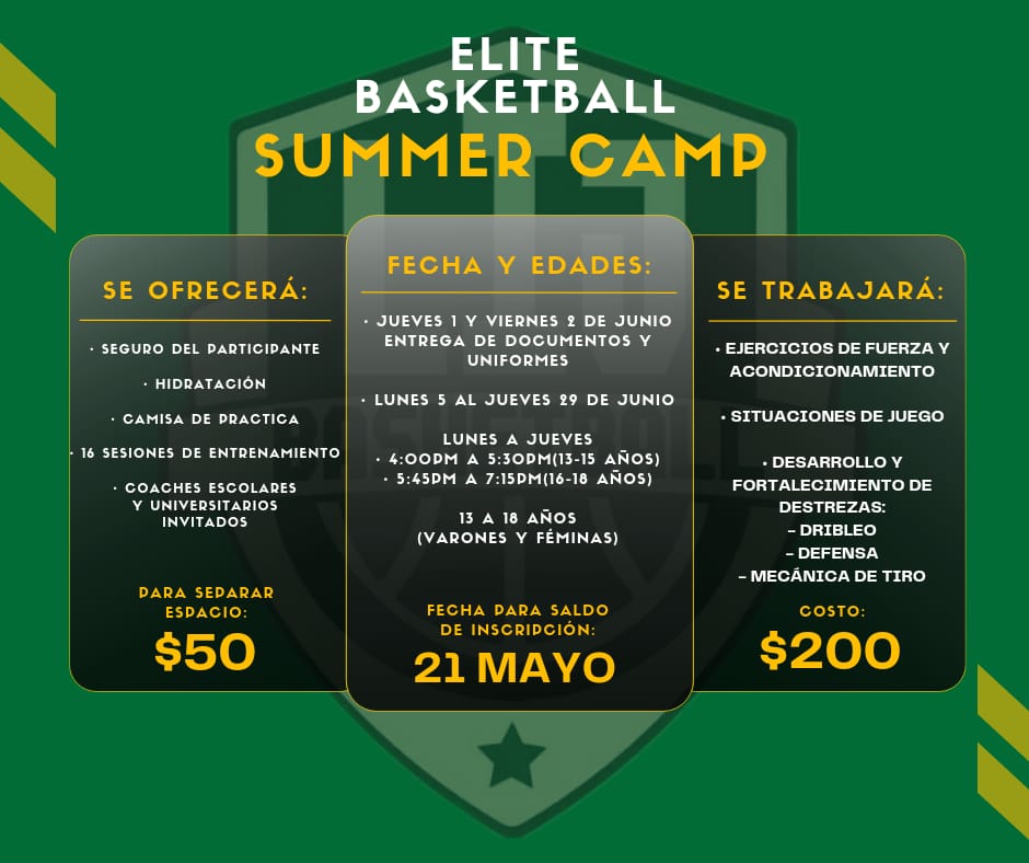 Con el deporte empieza el futuro de tus hijos. Apoyemos a nuestros hijos...no esperes mas...este verano dales el mejor regalo...separa sus espacio en este Campamento de Baloncesto histórico llamando al 787-519-0793 Emilio Ortiz. Espacios limitados. Nos reservamos el derecho de admisión.