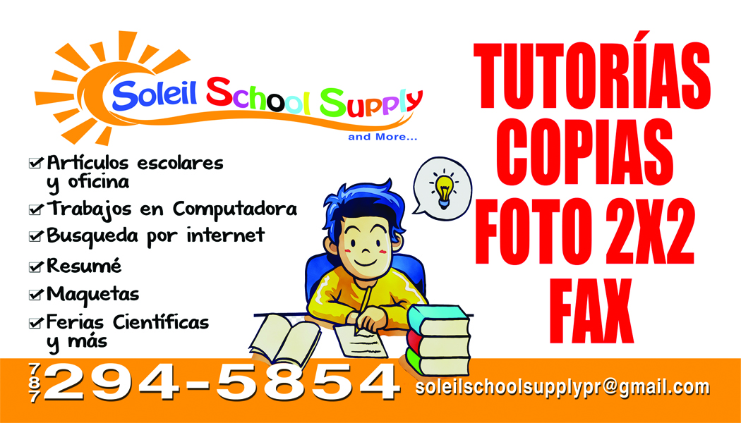 Negocio funcionando y con todos los permiso al dia. Venta de llave de School Supply. Negocio de venta y servicios escolares, universitarios y de oficina. Totalmente equipado, mercancía, local con estacionamiento, en area centrica de Loiza, area para dar tutorías con sillas, mesas y pizarra.Equipo para laminado, fotos 2x2, resumé, envió y recibo de documentos por internet, certificaciones del gobierno, se hacen labels, se forran libros, se hacen maquetas y ferias cientificas, entre otros. La computadora tienen todos los programas, documentos y proyectos. Se cierra la venta y se continua con la operación comercial.