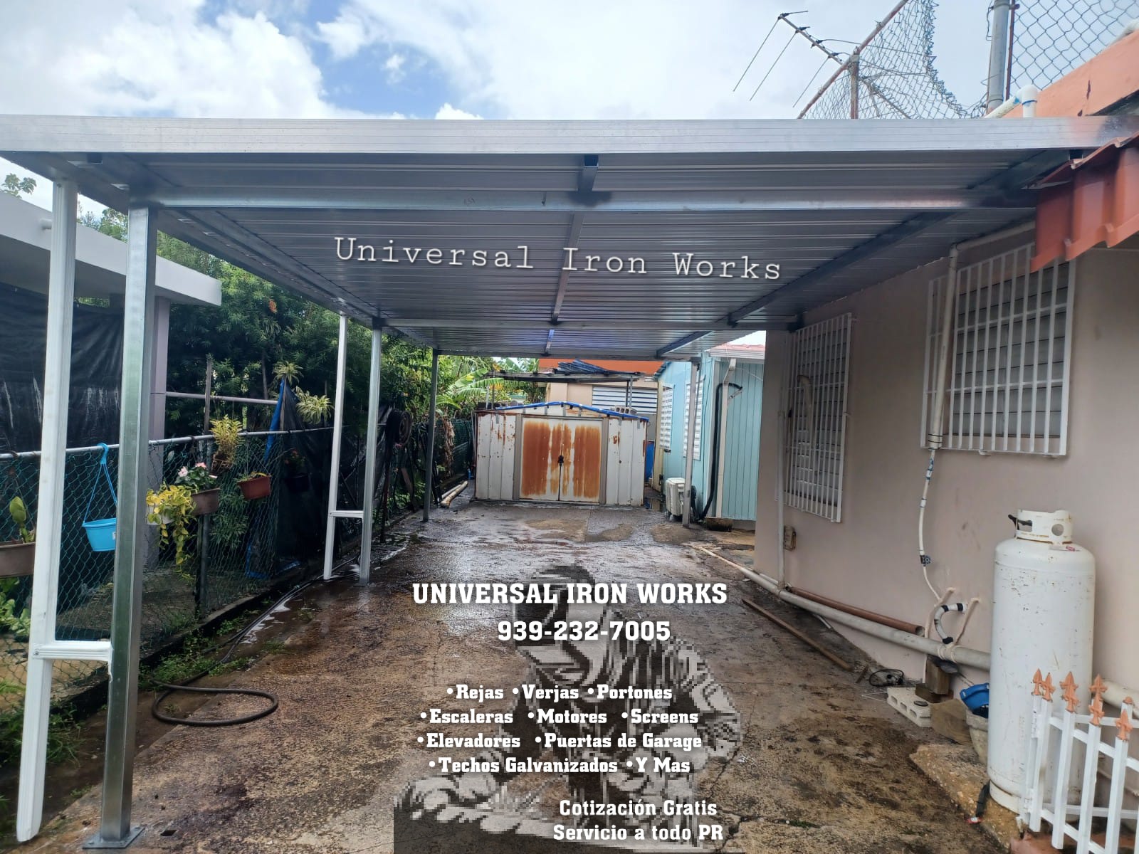 FABRICACION, INSTALACION Y REPARACION DE: REJAS, VERJAS CYCLONE FENCE, PORTONES, PUERTAS DE GARAGE, MOTORES, ESCALERAS RECTAS-ESPIRAL-ESCAPE, SCREENS, TECHOS GALVANIZADOS, TORMENTERAS, CORTINAS EN ALUMINIO, ESTRUCTURAS EN ACERO, ENTRE OTROS.