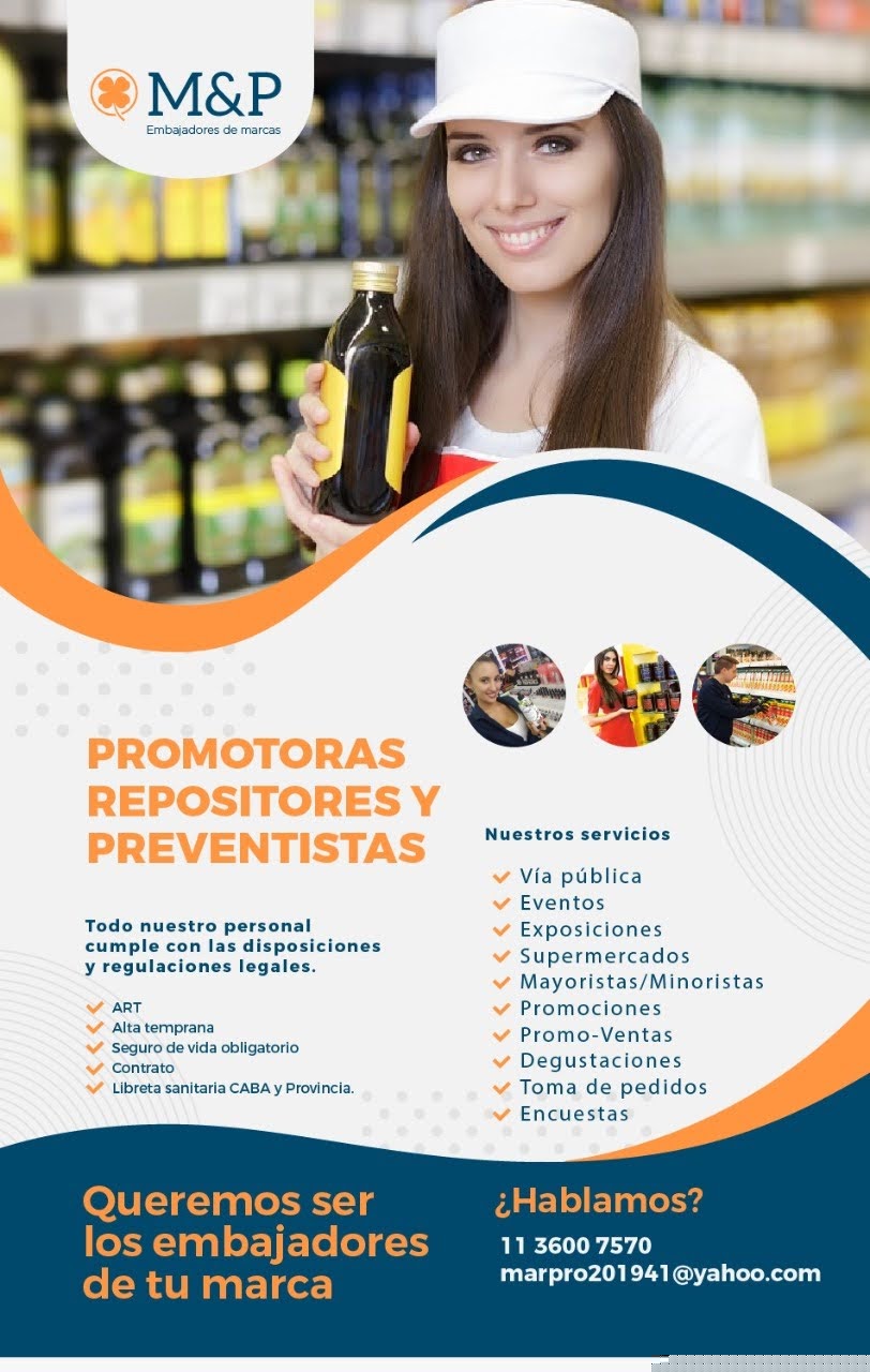 Promotoras. Para promoción. Ventas y degustaciones en supermercados y dietéticas