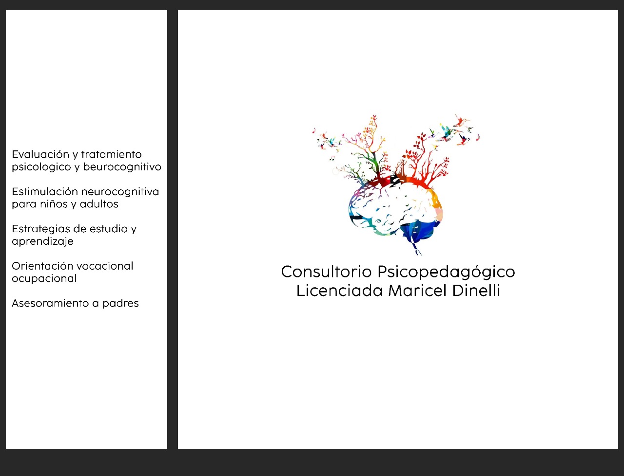 LIC. EN PSICOPEDAGOGIA ESPECIALISTA EN NEUROCOGNICION Y APRENDIZAJE- DINELLI MARICEL -Atención a niños y adultos. - Evaluación y Tratamiento Psicopedagógico y Neurocognitivo -Orientación vocacional- ocupacional