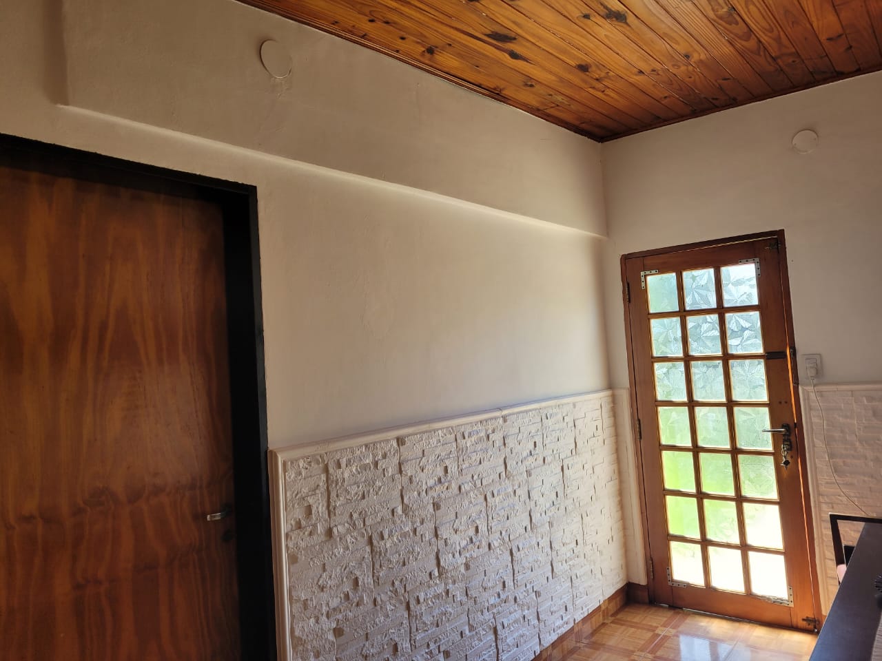 DUE?O DIRECTO VENDE casa grande en muy buen estado general en calle M. Necochea 3700 Santo Tome. Construida en una sola planta sobre terreno de 9 x35mt., espaciosa, luminosa, frente de ladrillos vistos con aberturas en madera de cedro y jard?n al frente. Tiene 2 dormitorios de grandes dimensiones(uno en suite), 2 ba?os, living, cocina amplia con muebles en algarrobo, comedor, sala con 2 mesadas de madera y muebles con puertas, lavadero interior con pileta grande, mesada con pileta y espacio para lavarropas, una sala multiusos, garaje para 2 veh?culos grandes, patio seco con asador cerrado con reja, gran parque con arboles frutales y un deposito para guardar las herramientas del jard?n, su per?metro cerrado con tapiales. Tiene agua corriente y el gas envasado pasa por la puerta, no fue instalado. El transporte p?blico pasa a una cuadra, se ubica a una cuadra de Av. Corrientes y a 2 cuadras de Av. Sarmiento, en sus
