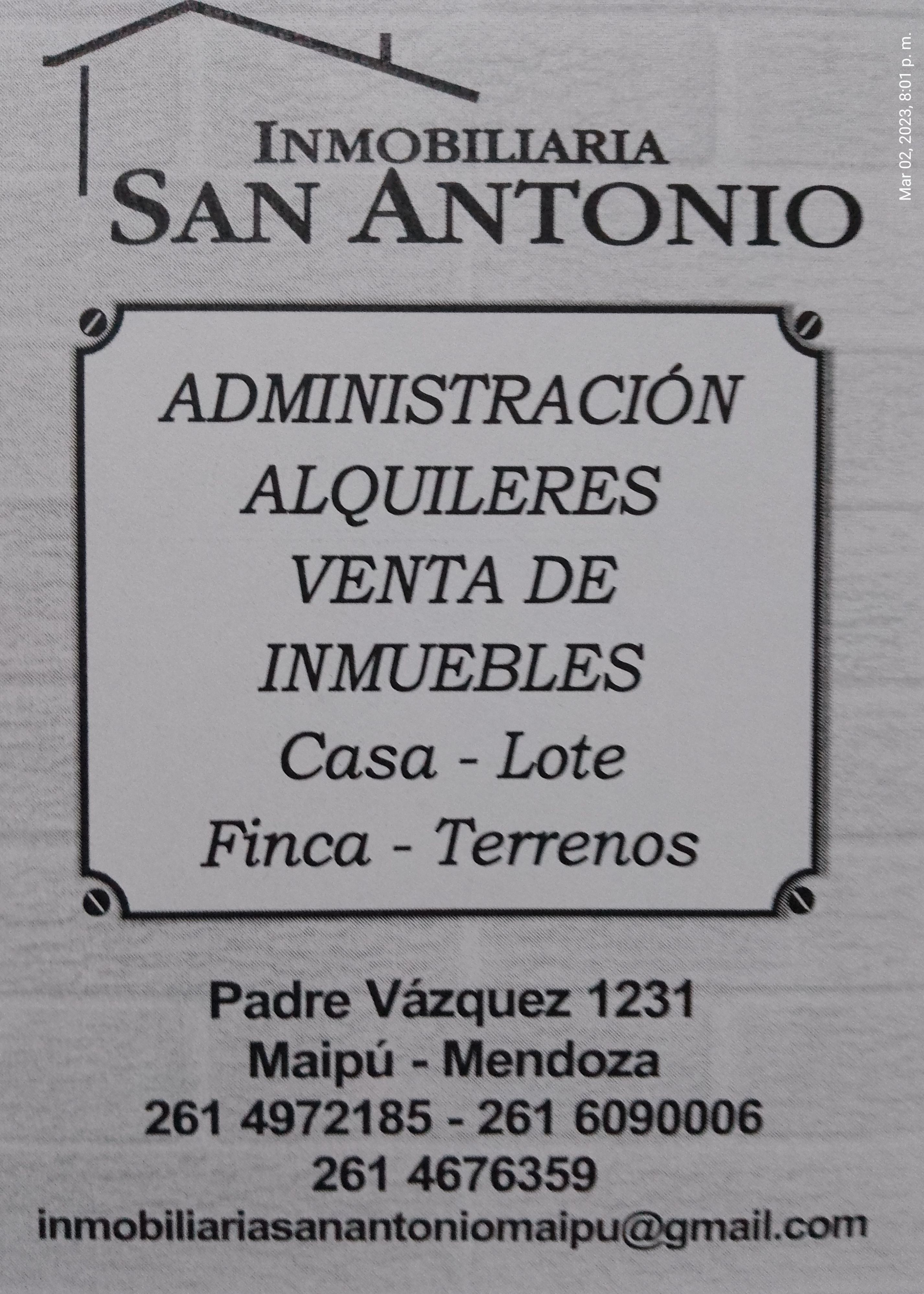 Inmobiliaria San Antonio VENDE en Coquimboto, Maip?, en el Barrio KOVE, adyacencia de calle Urquiza y Monteagudo Bernardo, es una zona urbana y rodeado tambi?n de bodegas y su atractivo denominado los caminos del vino de Mendoza. Tambi?n se encuentra a 2 km de Ruta 7 y a 11 km de la ciudad de Mendoza, a 3 km del centro de Maip?.