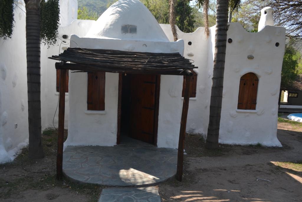 Quincho descubierto con mesa y bancos de material.