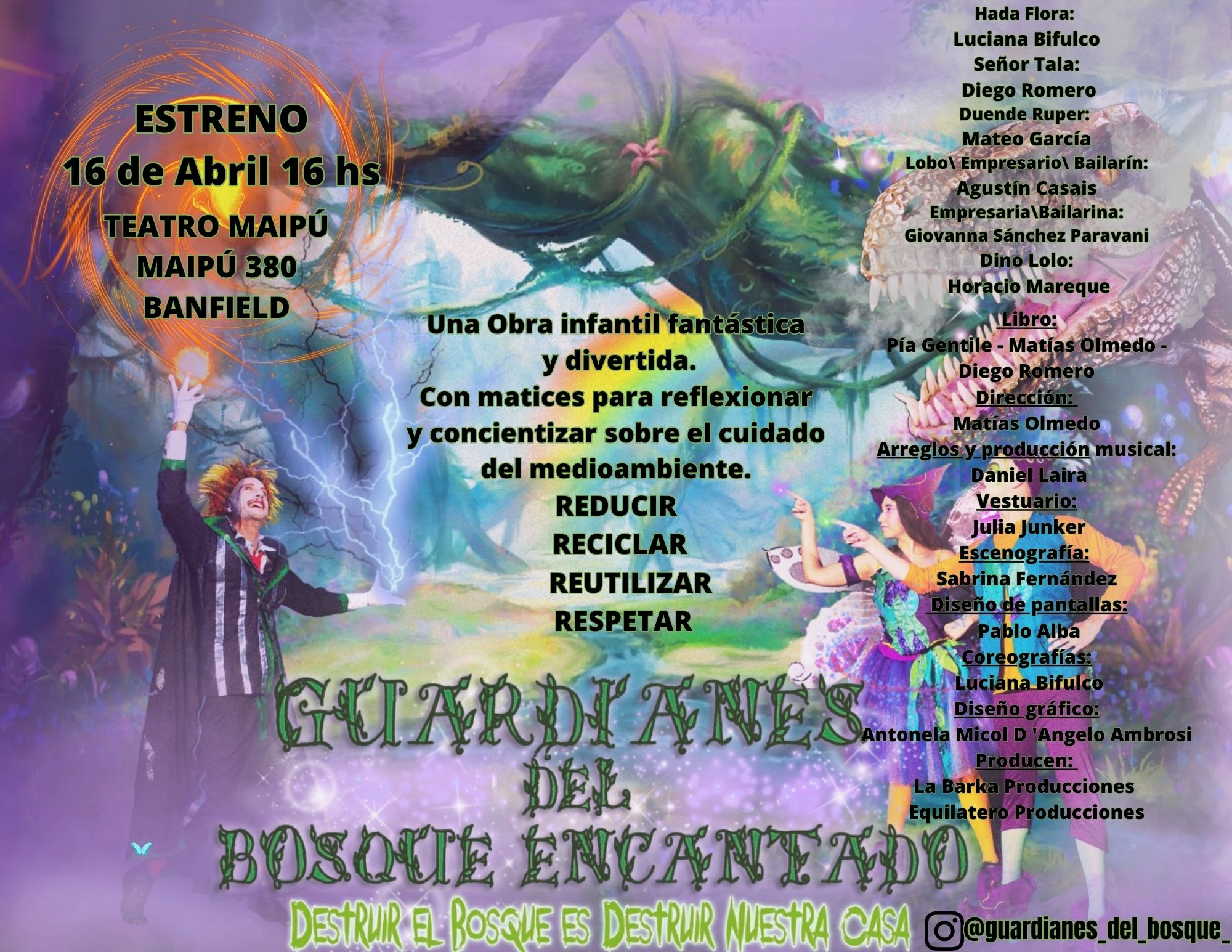 Estreno el día 16 de Abril 16 hs Teatro Maipú, Banfield. Una obra infantil, fantástica y divertida con matices para reflexionar y concientizar sobre el cuidado del medioambiente. Te esperamos
