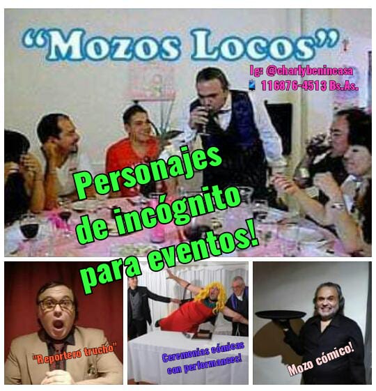 Shows de mozo loco y personajes cómicos infiltrados para fiestas, eventos y recepciones familiares y de adultos!!