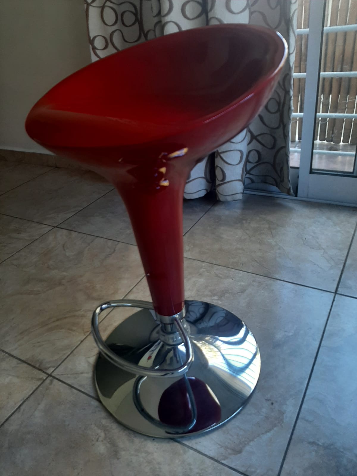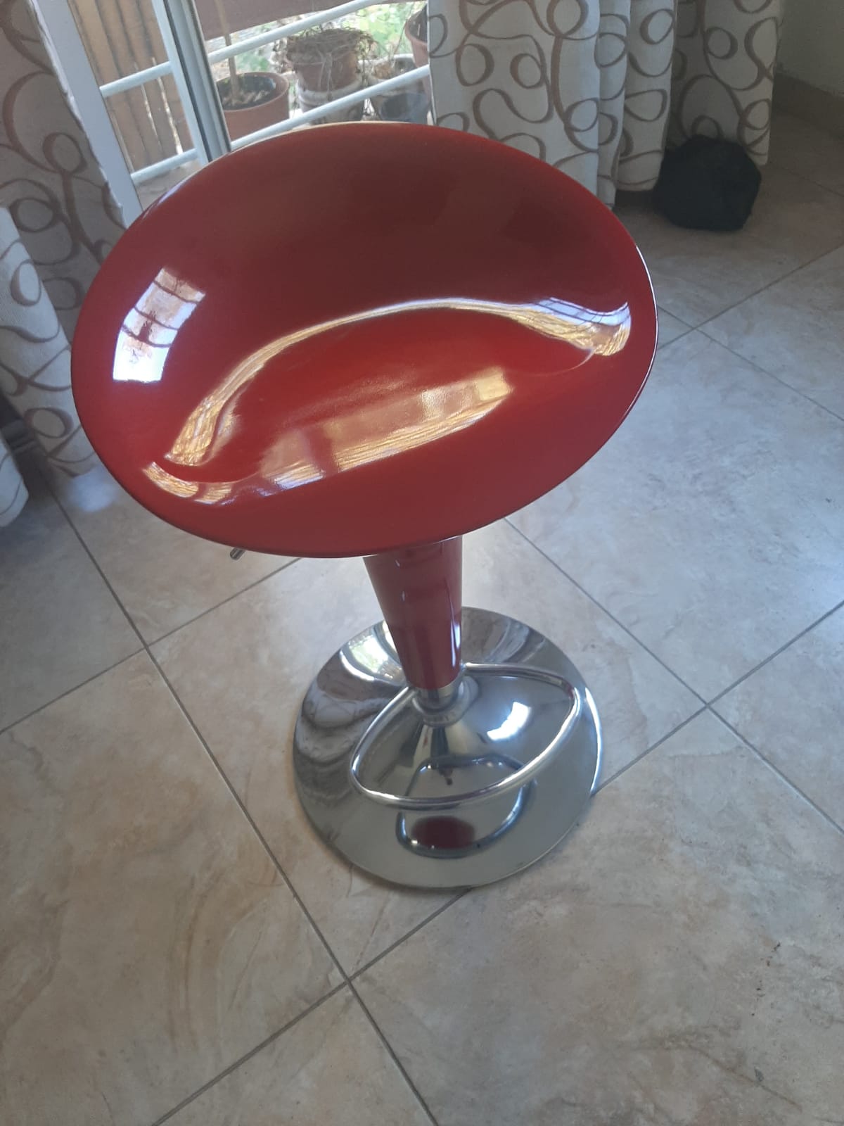 Son 4 bancos de base cromada, rojos, altura regulable, para barra desayunador a. Casi nuevos, mecanismos impecables. El precio es por los 4.