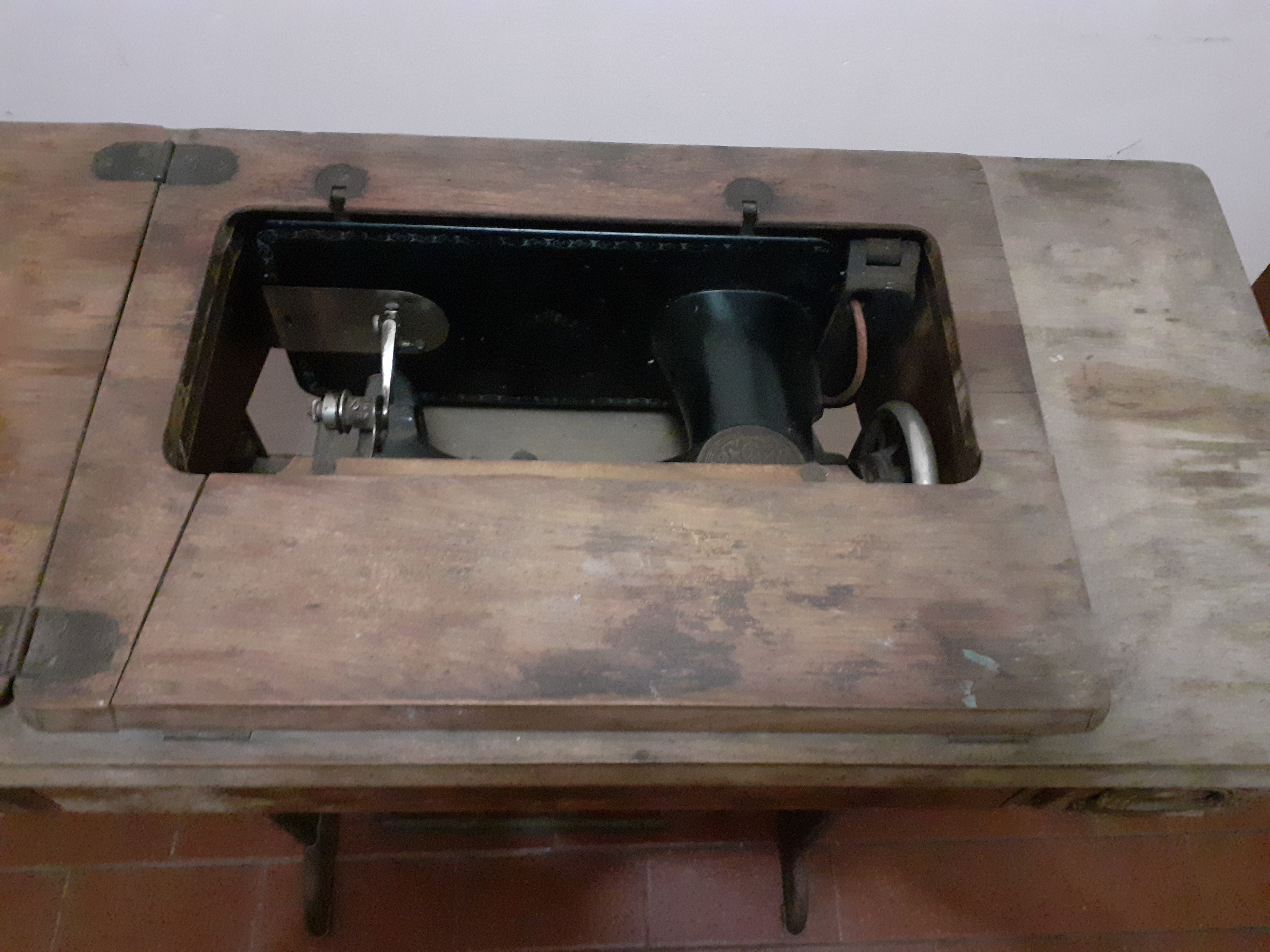 Vendo máquina de coser SINGER, antigua.Año 1924 Para reparar o repuestos.No toma el hilo la bobina inferior Tiene daños en el mueble.