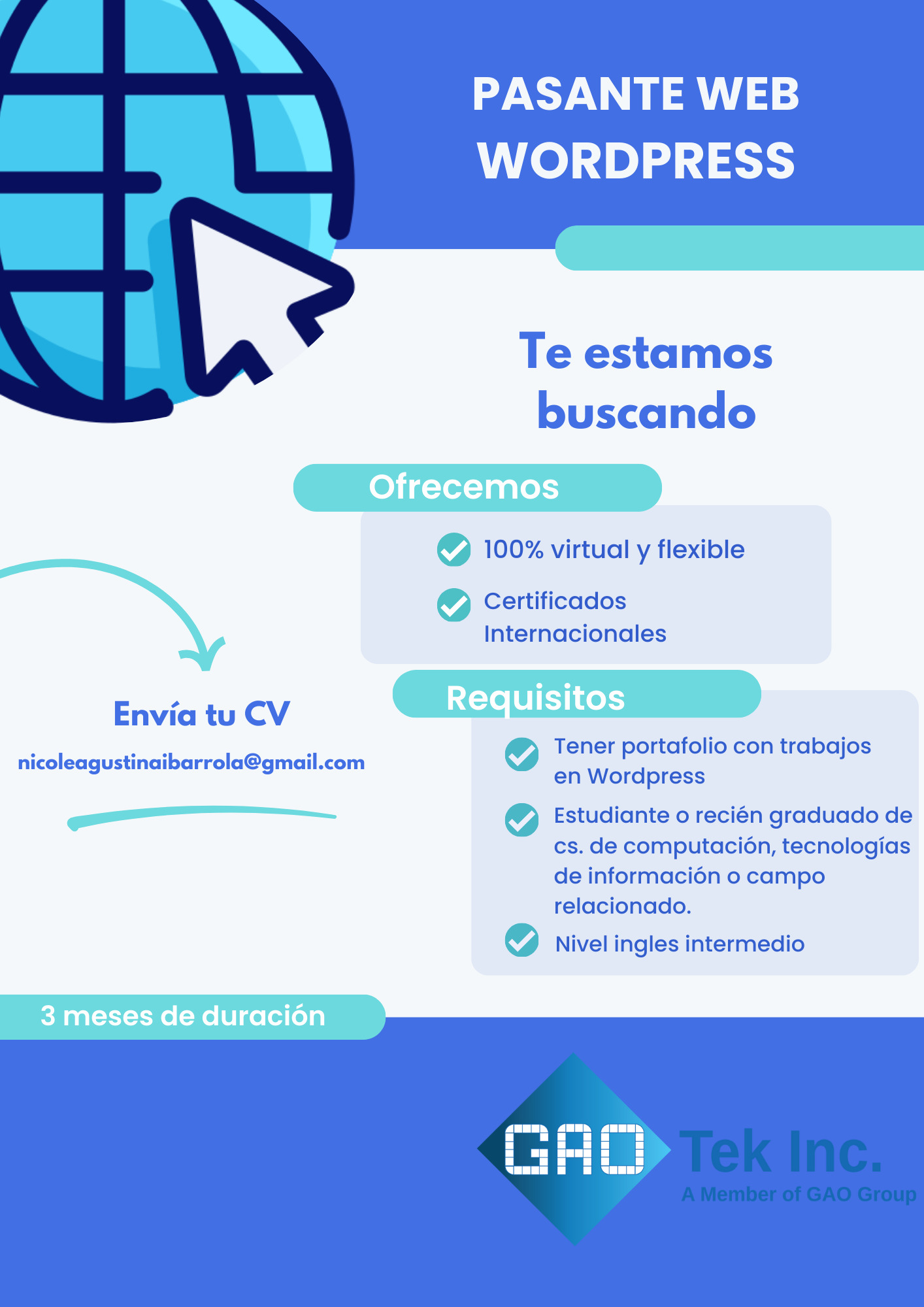 Duración mínima: 3 meses.