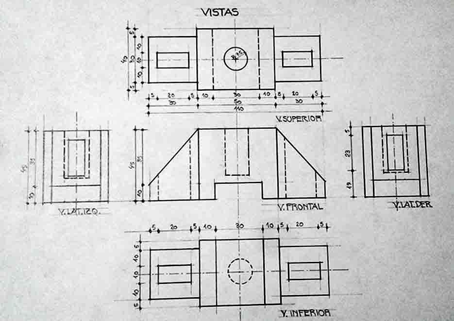 Profesor de Dibujo Técnico, representación gráfica, sistemas de representación, proyección ortogonal, sistema Monge, Vistas, cortes, despieces, cotas. Perspectivas isométricas, axonométricas, caballera, polar con 1 punto de fuga, polar con 2 puntos de fuga.