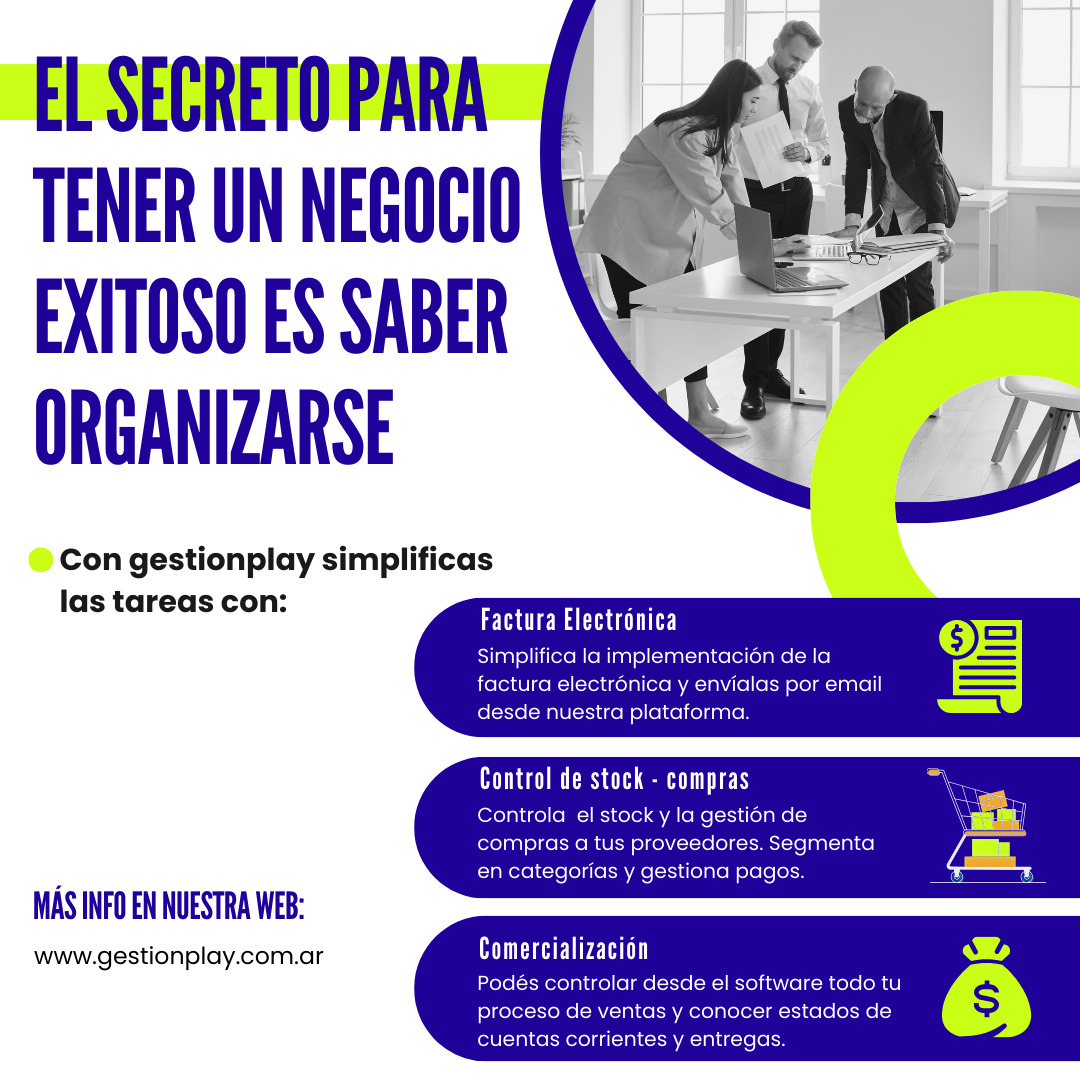 *GestionPlay es una solución de gestión para Pymes elegida por más de 350 empresas muy simple y fácil de usar. Sin requerimientos de instalación, permite a los distintos usuarios y sucursales de una empresa o emprendimiento trabajar desde cualquier PC, tablet o teléfono con conexión a internet. GestionPlay es un Software Administrativo, Contable y de operación Puntos de Venta basado 100% en web distinto a cualquiera de las soluciones actuales de mercado. Un innovador diseño de la interfaz gráfica lo transforma en el Software ERP más sencillo y fácil de usar, haciendo que la gestión sea simple, permitiendo lograr resultados a corto plazo. Te recomendamos visitar nuestro sitio WEB GESTIONPLAY, donde podrás encontrar más información y solicitar un Demo.