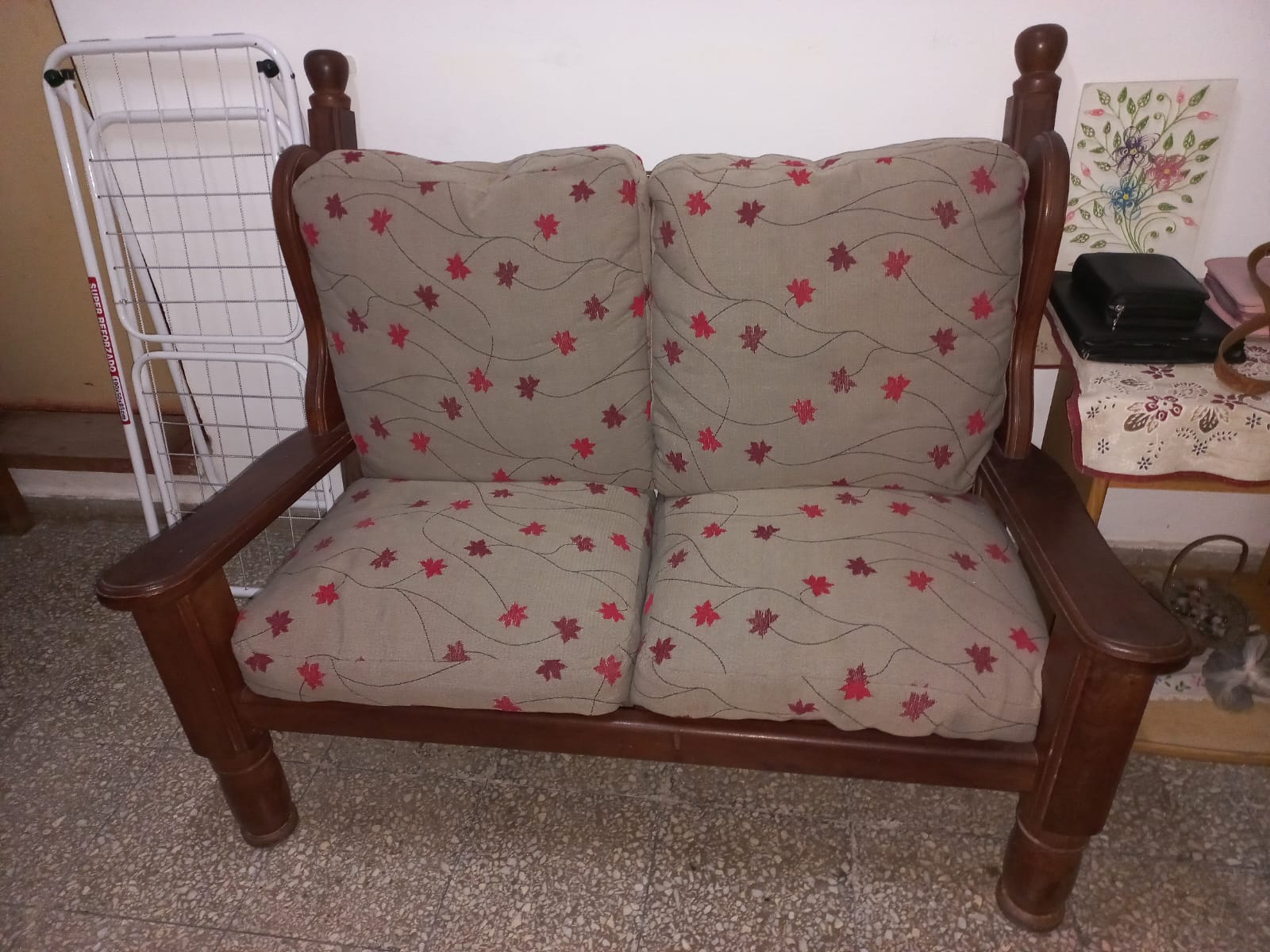 Juego completo de living de algarrobo. Mesita con vidrio