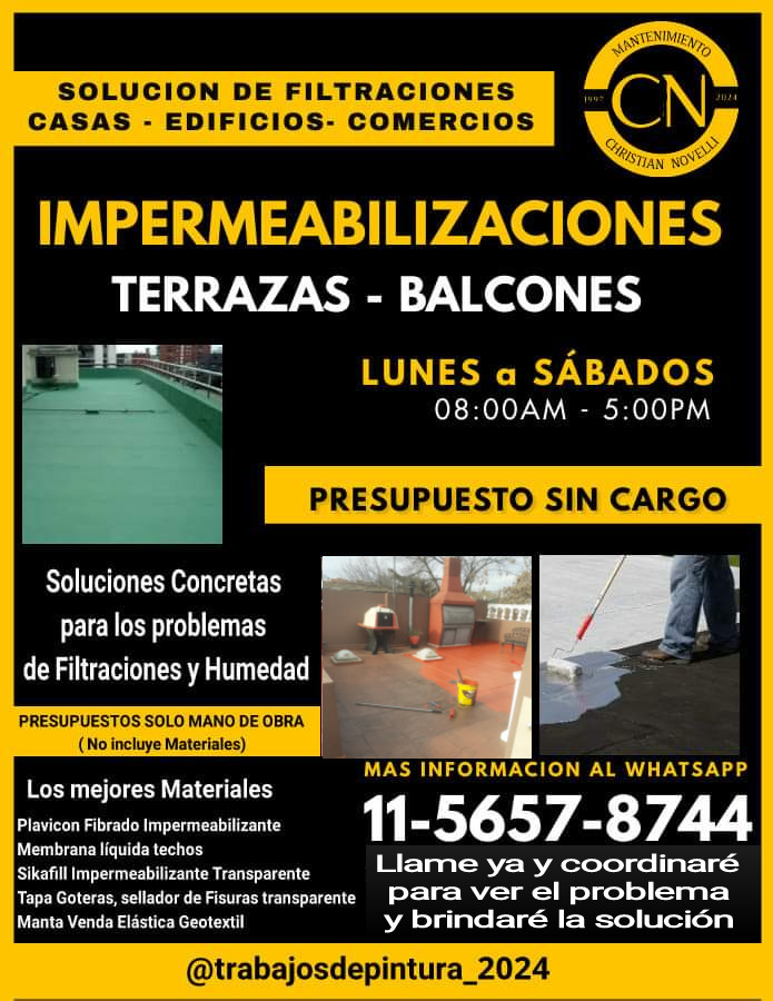 Trabajos de impermeabilizaciones con Productos según el caso que se Requiera.