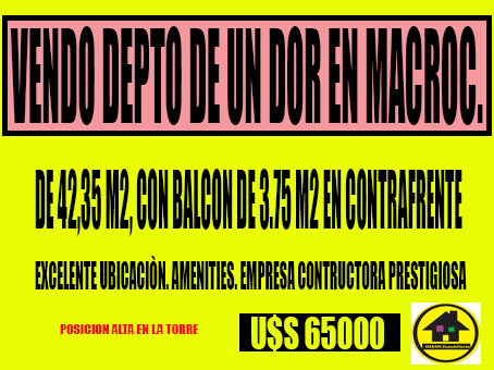 Con escritura.El depto consta de una superficie de 42, 35m2 propios. El balcón ocupa una superficie de 3.75m2. La superficie total es de 46.10m2.
