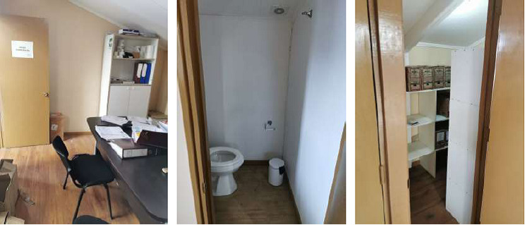 Piso cer谩mico en oficina y ba帽os.