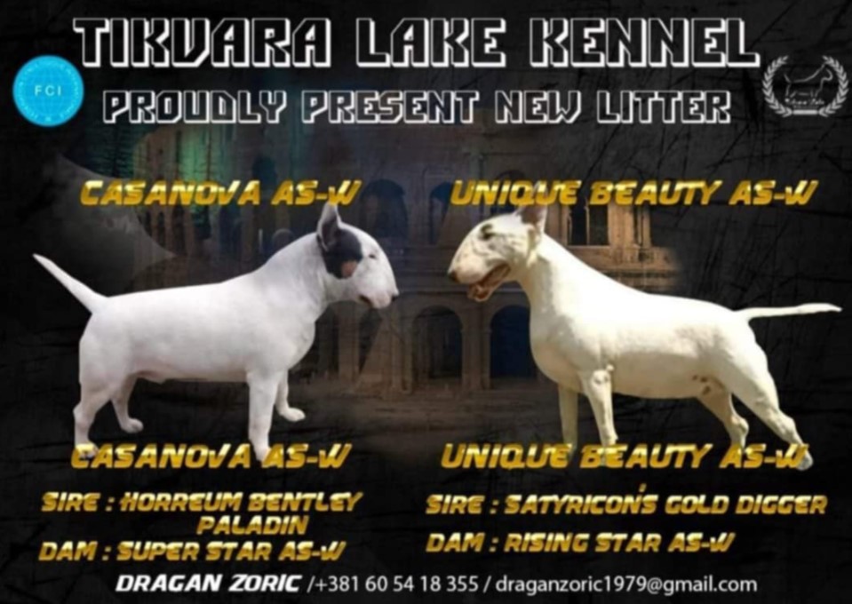El criadero TIKVARA LAKE KENNEL (FCI 7519) presenta con orgullo una excelente hembra de bull terrier estándar de 4, 5 meses.