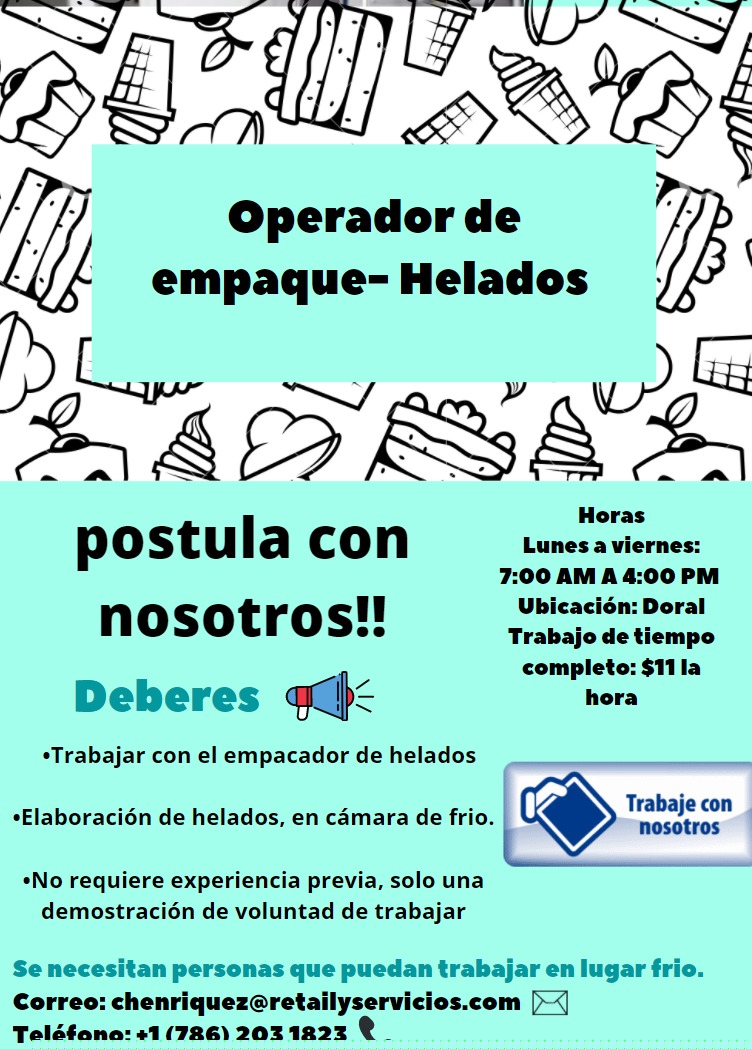 Se busca personal para la producción y elaboración de Helados artesanales, utilizando materia prima de primera calidad. El propósito es ofrecer un producto exclusivo, exquisito y tradicional.