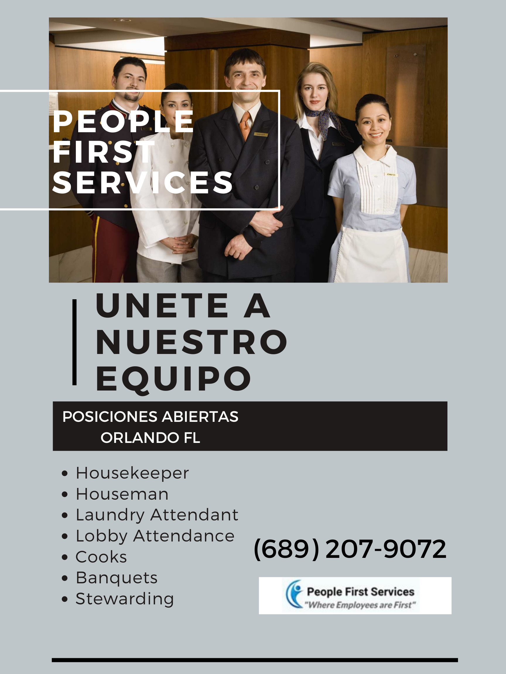 Buscamos personal para trabajar en hoteles en todo el area de Orlando. (689)207-9072