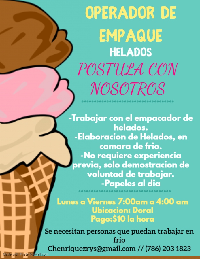 Se busca personal para la producción y elaboración de Helados artesanales, utilizando materia prima de primera calidad. El propósito es ofrecer un producto exclusivo, exquisito y tradicional.