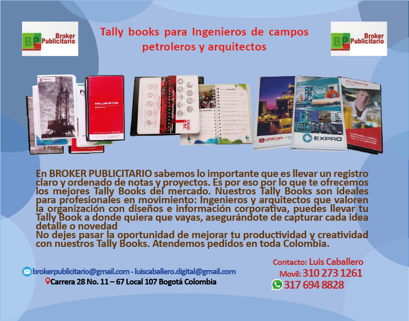 No dejes pasar la oportunidad de mejorar tu productividad y creatividad con nuestros Tally Books. Atendemos pedidos en toda Colombia.