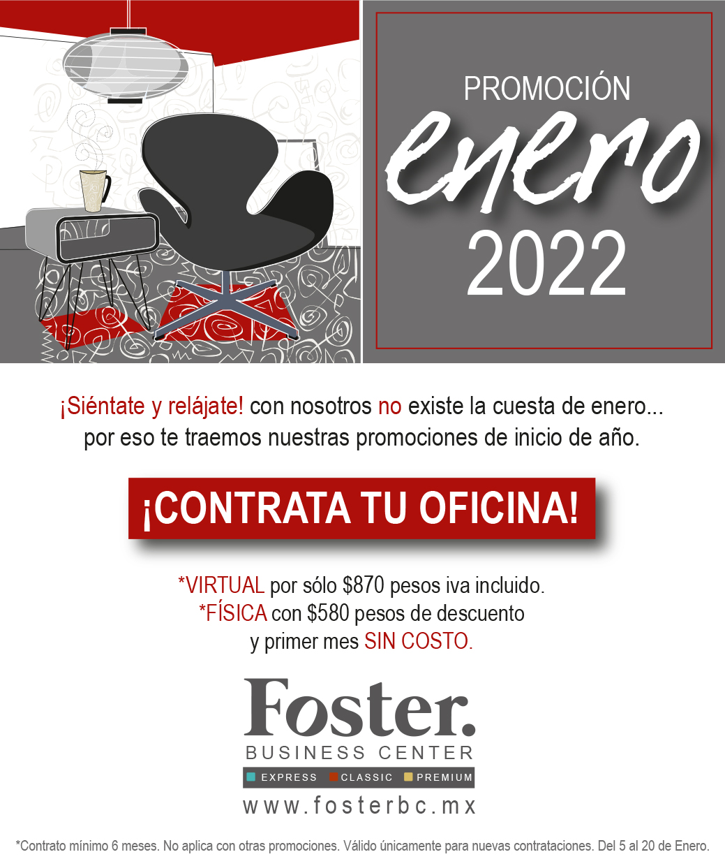 Está es la mejor opción para tener la oficina ideal para tu negocio aprovecha la promoción que tenemos este mes en oficinas Físicas y Virtuales en Foster tenemos la indicada para ti Llama al Tel.: 33 3673 7559/ 33 3673 7560 Será un gusto atenderte