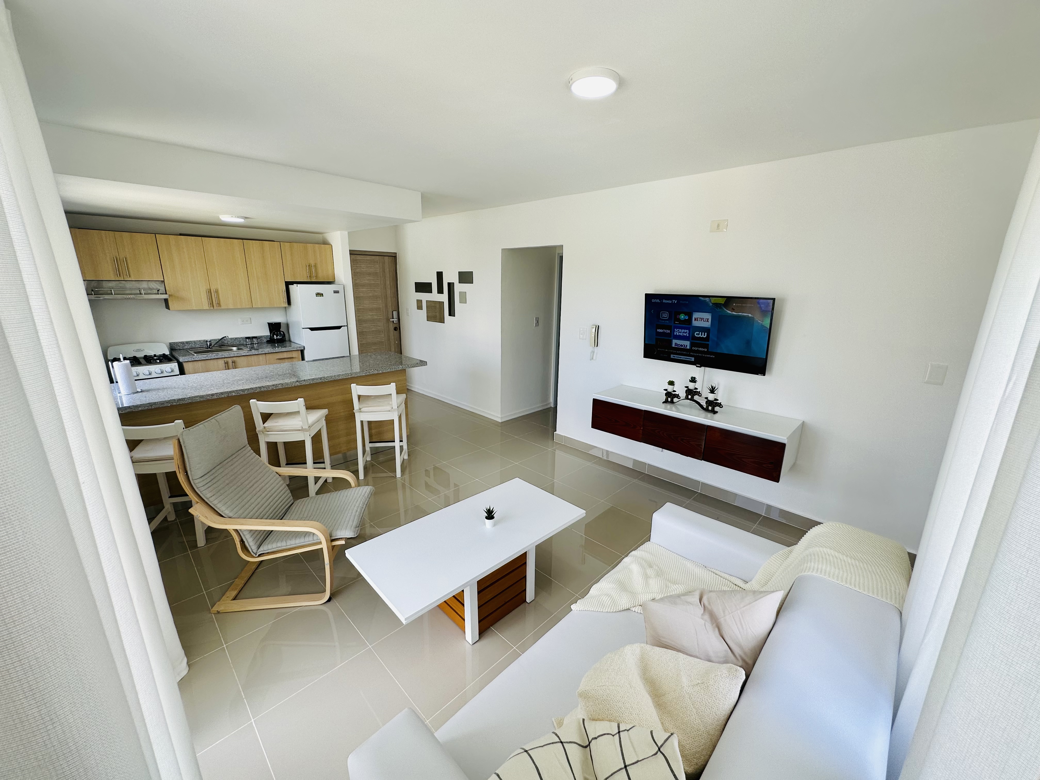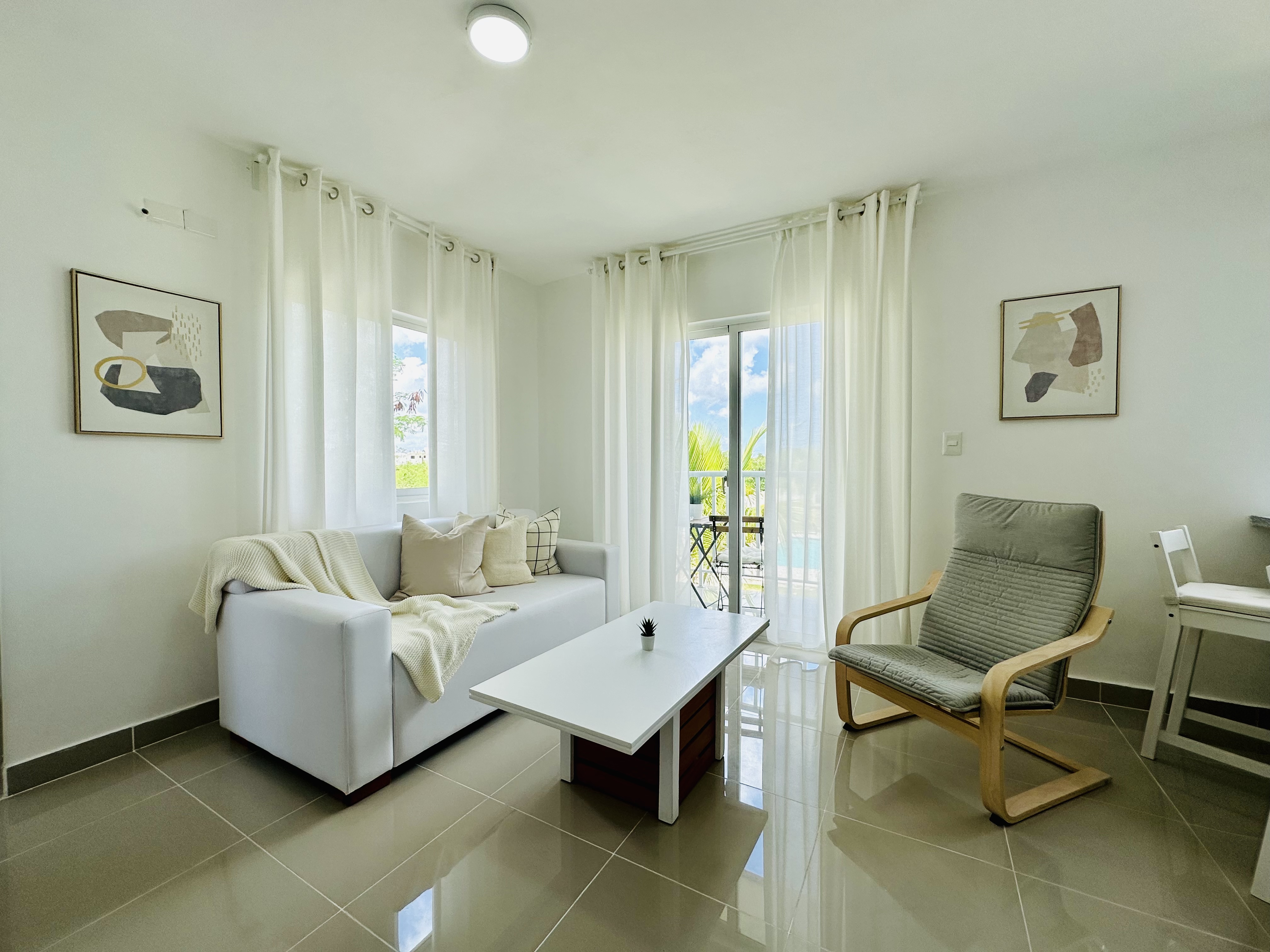 Hermosos apartamentos amueblados en serena Village, es un condominio serrado con guardia 24/7 transporte a la playa gas agua y 9 piscina, a 10 minutos de la playa y a 15 del Aeriopuerto de Punta Cana, los apartamentos tienen vistas a la piscina