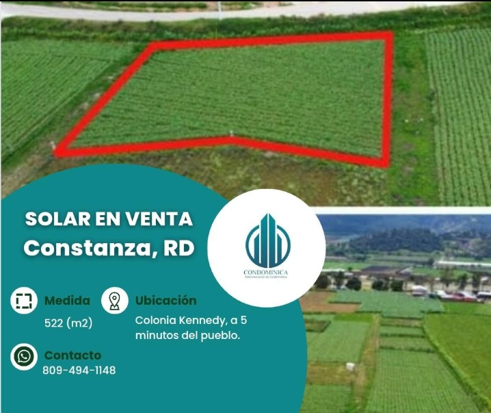 El solar está ubicado a menos de 5 minutos del centro del pueblo, en el sector la Colonia Kennedy, que está frente al helipuerto de Constanza.