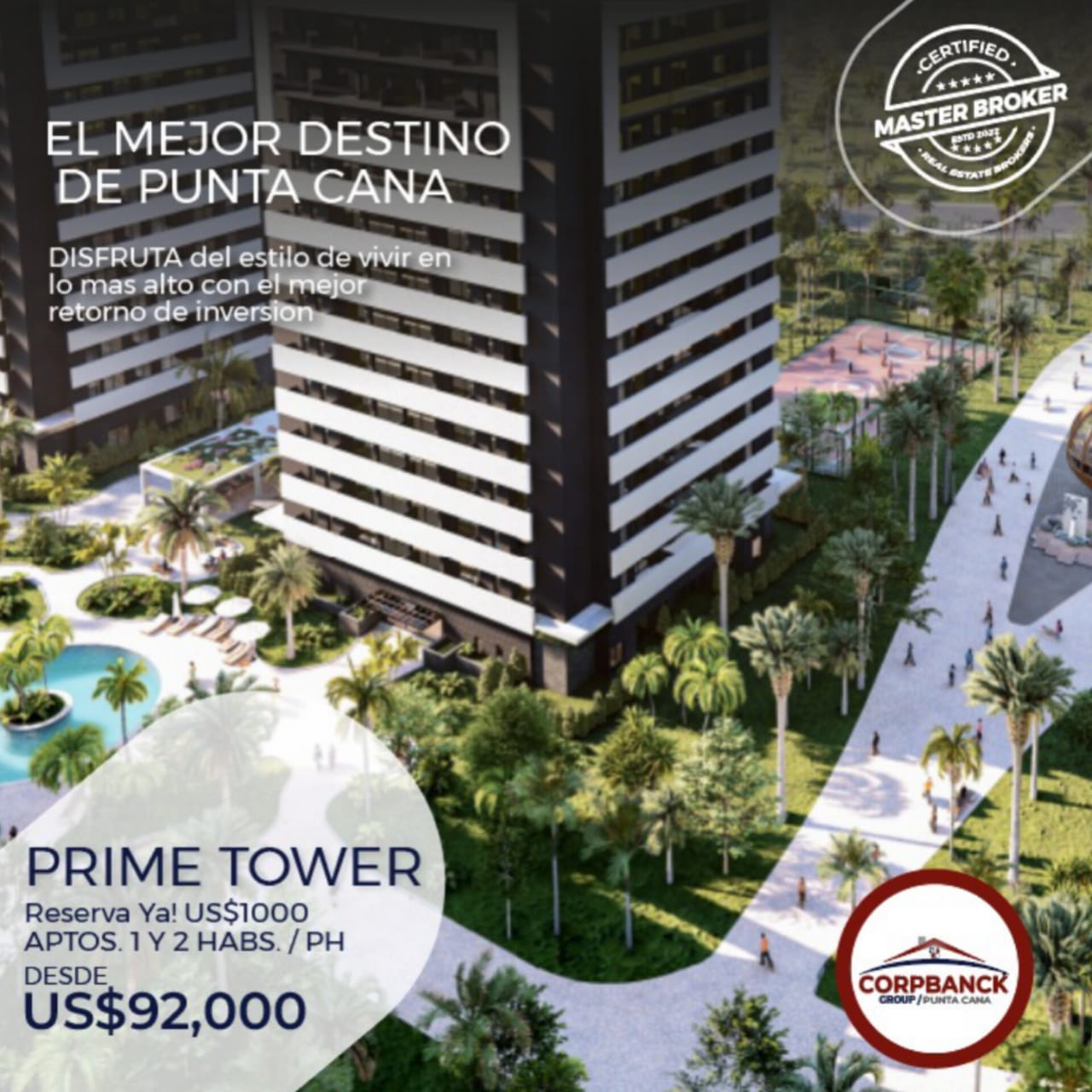 Es una ciudad o complejo de Apartamentos, Villas y Pent-house con sistema inteligente, con toda la seguridad y facilidades que puedes imaginar para vivir una vida placentera, ubicado en la parte más alta y con mejor vista de Bávaro.