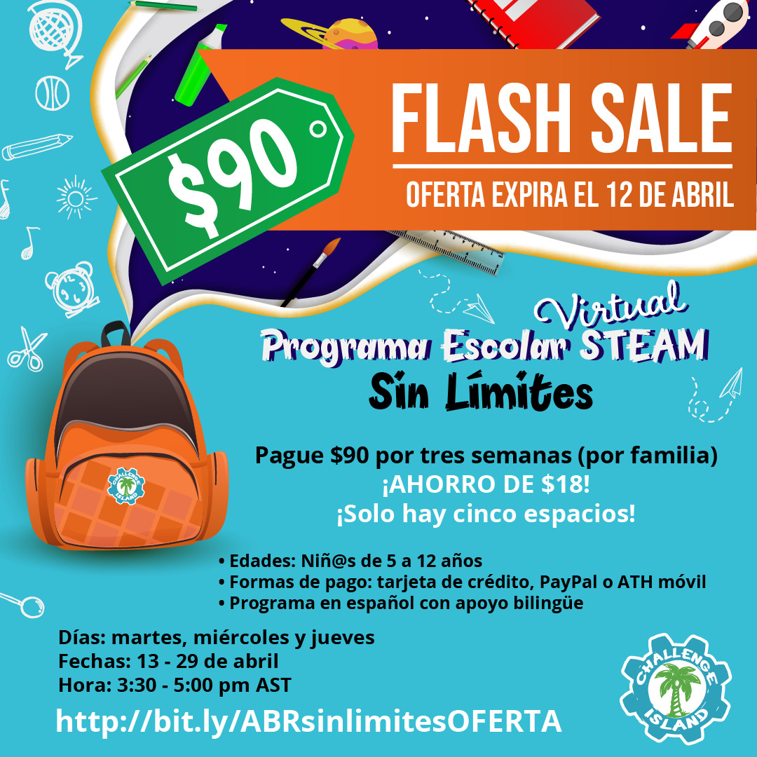 Puede aprovechar de nuestro FLASH SALE, donde ahorra $18 al matricular a sus peques en las próximas 3 semanas del programa.