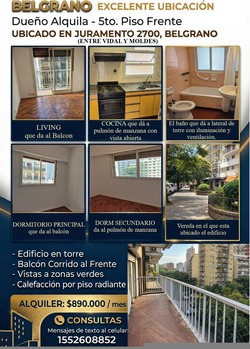 Belgrano.dueño Alquila Depto. 3amb. Fte. Balcón