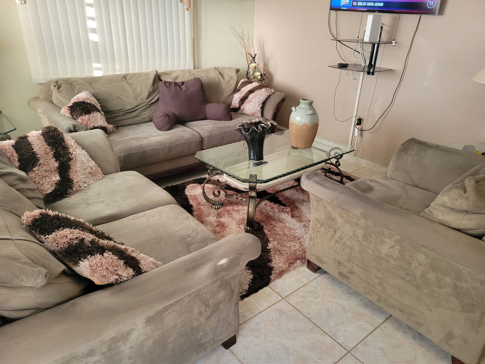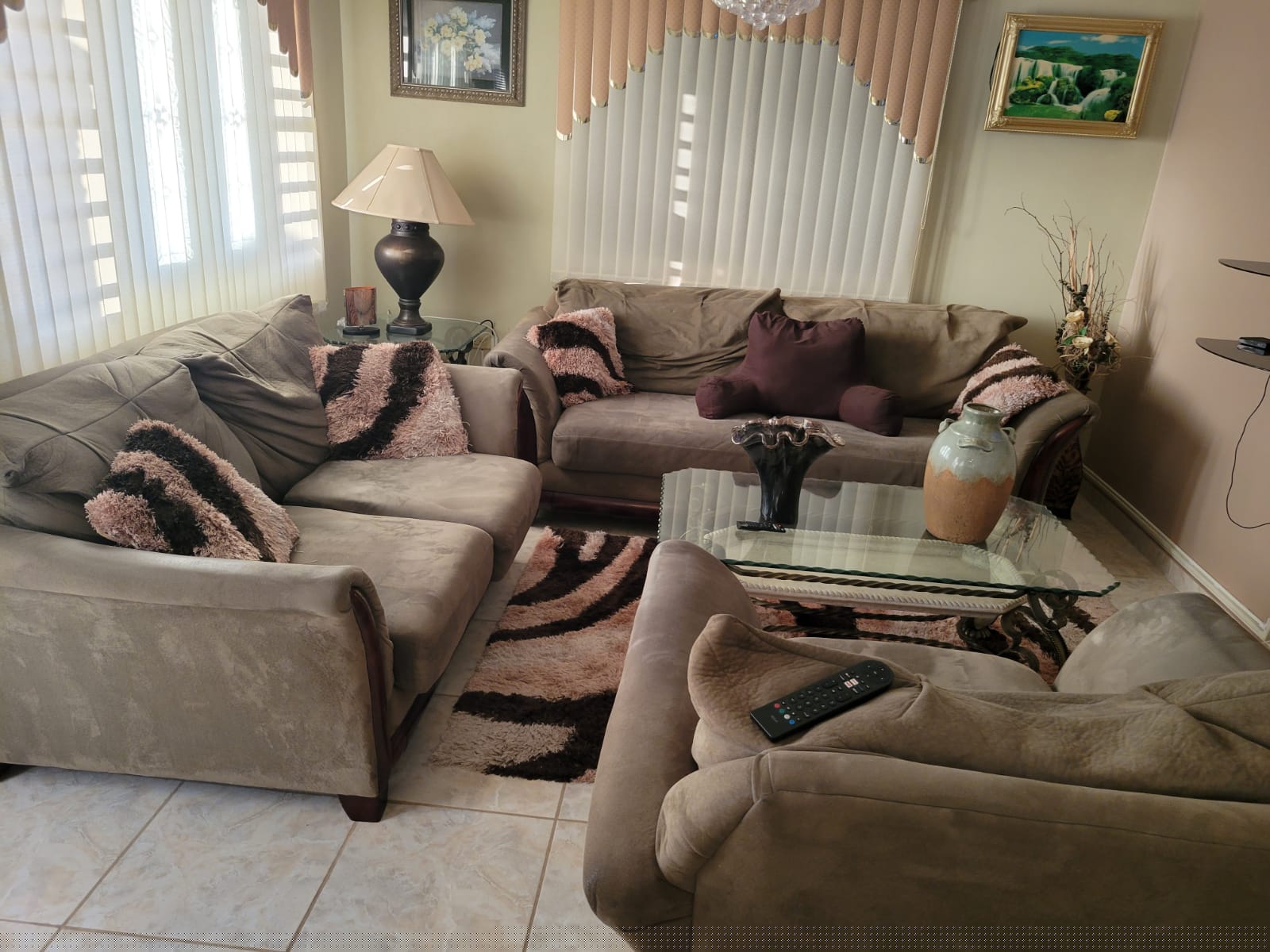Juego de sala con 3 mesas cristal en buenas condiciones. Favor de enviar mensaje de texto.
