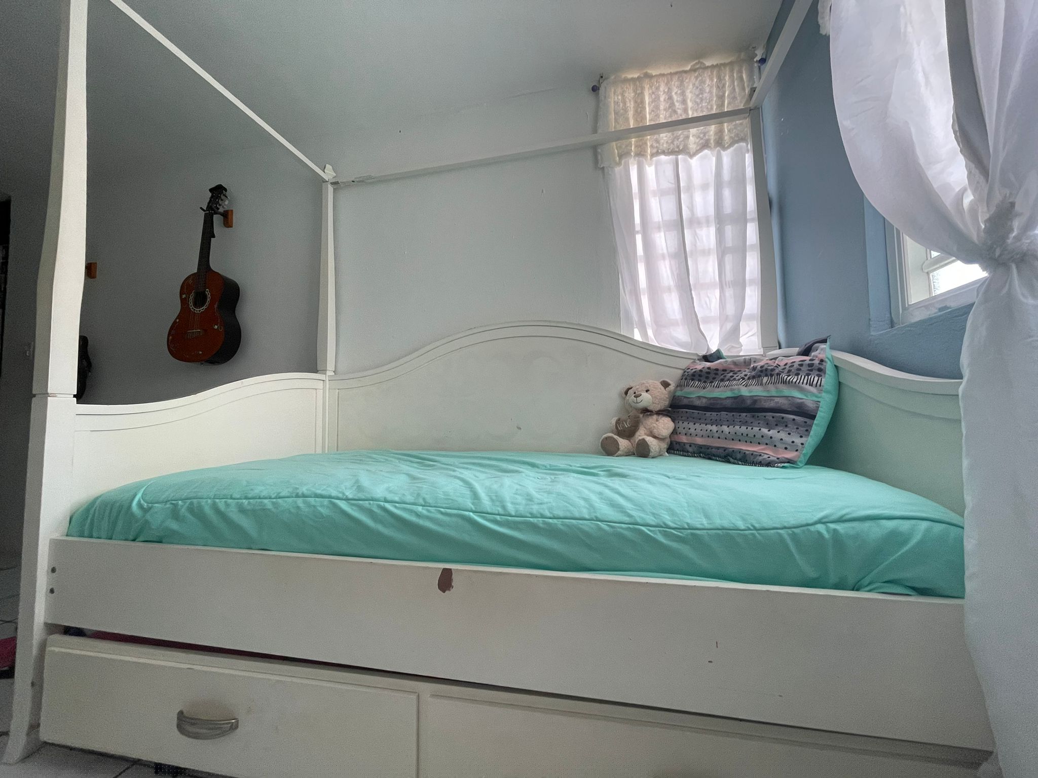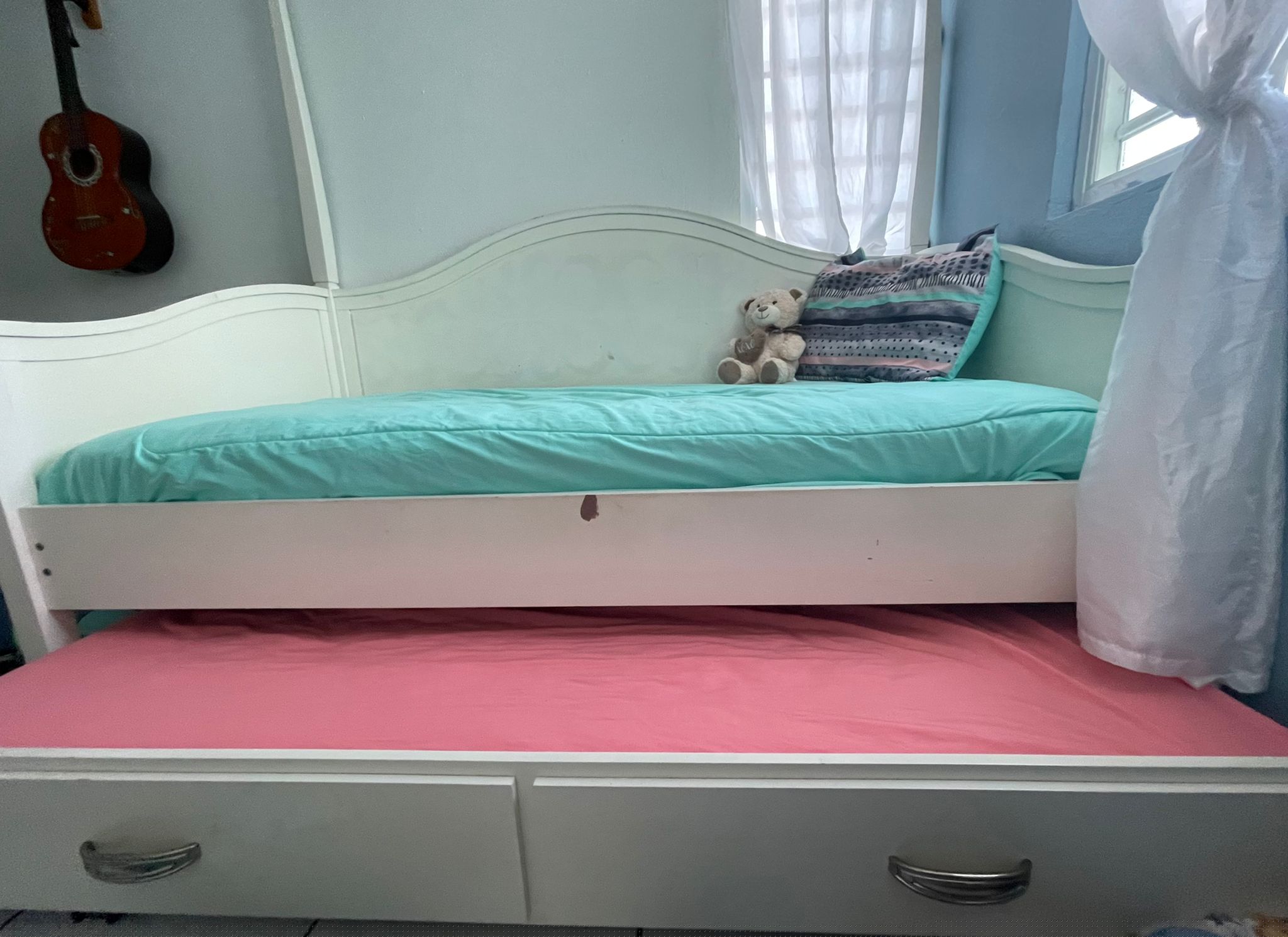 Cama twin tiene otra cama debajo que se guarda incluye 1 solo mattre madera sólida