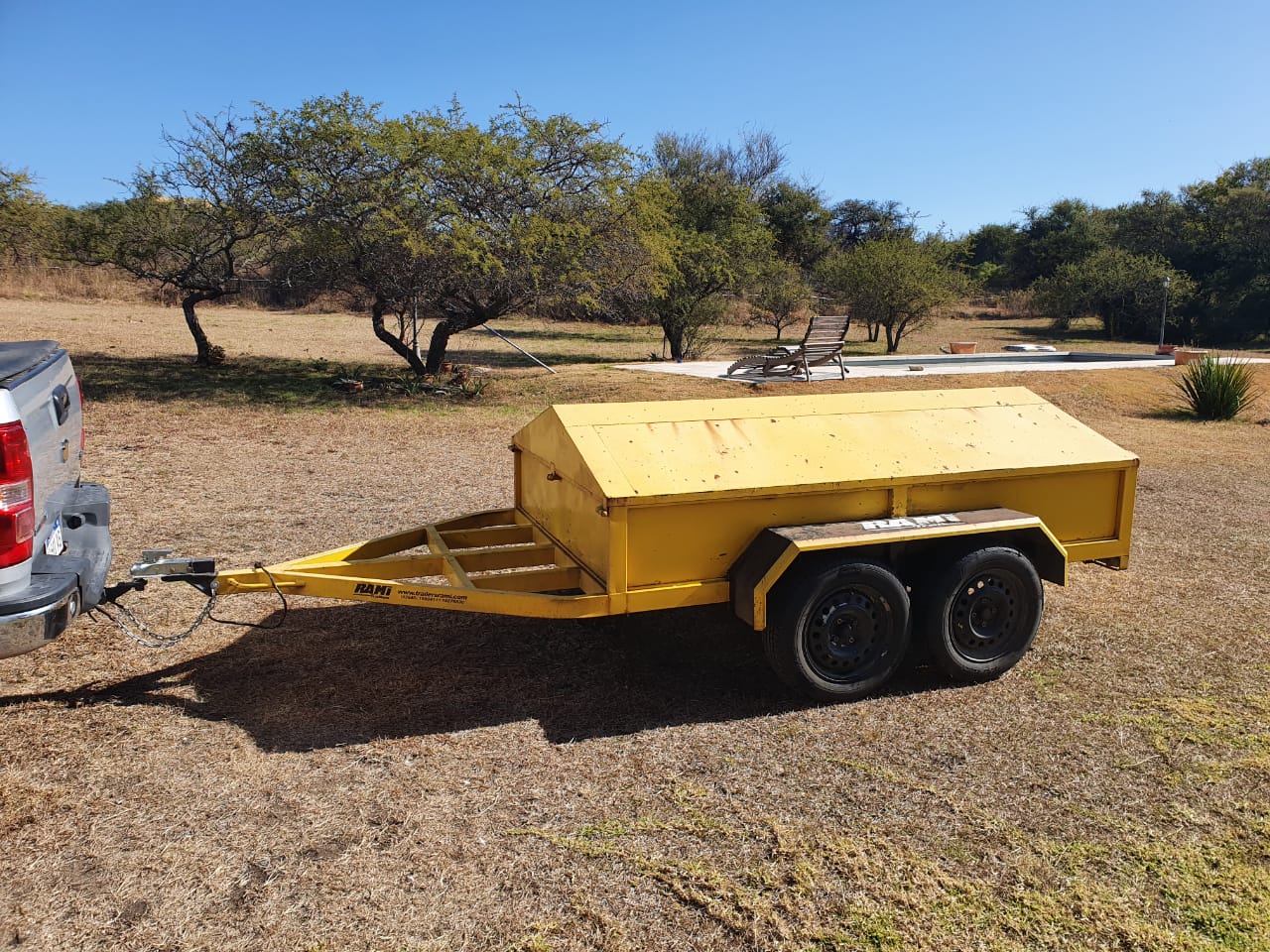 Trailer Rami doble eje.Capacidad de carga 2.50x 1.50mts 2800kg. Cuatro neumaticos nuevos y rueda de auxilio.Tapa desmontable.
