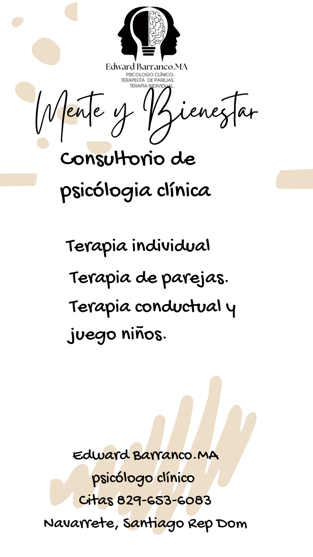 Ofrecemos consultas de salud mental, psicología clínica. Terapia de parejas. Terapia individual. Terapia con ductual de niño. Edward Barranco.MA Psicólogo clínico Aprecio absequible